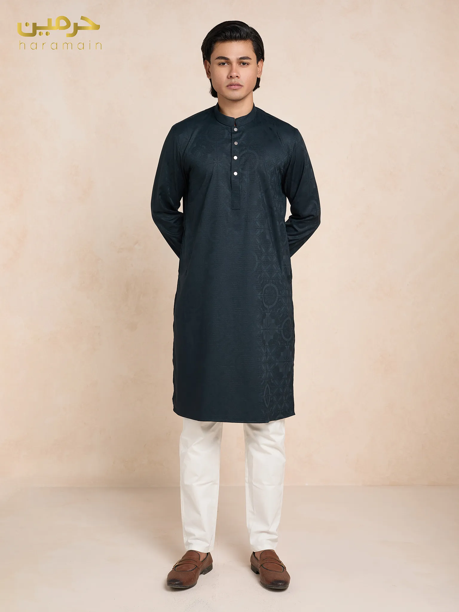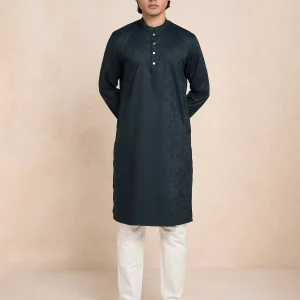 Crafted from premium bamboo silk fabric, this classic panjabi offers a smooth, lightweight and breathable feel for all-day comfort.