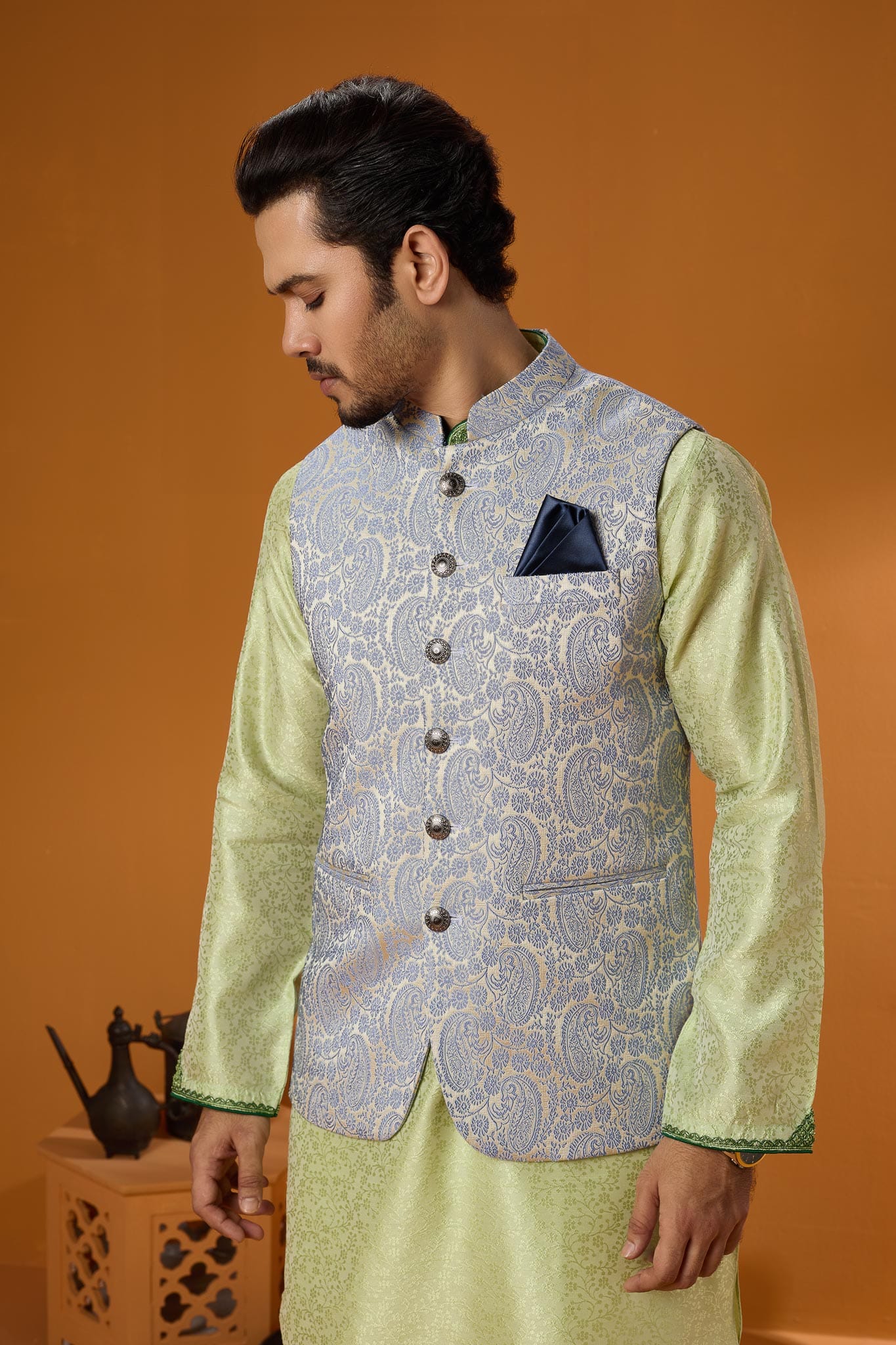 Blue Bamboo Silk Panjabi