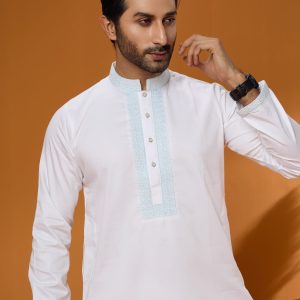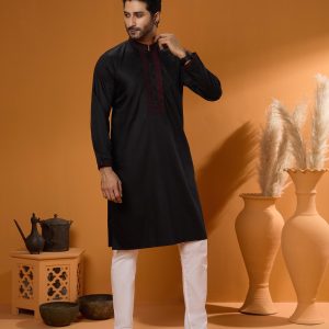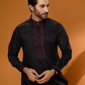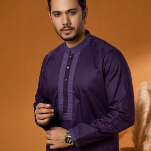 Introducing our Exquisite Panjabi. Tailored from Ultra Premium Shaton Fabric, this Panjabi showcases Elegant Design and a Touch of sophistication. This Panjabi features Premium Embroidery. The Maroon, Black, Purple and White colour is carefully chosen to suit various preferences and occasions. Designed with attention to detail, The metallic buttons add a tasteful finishing touch elevating the overall look with a hint of glamour.