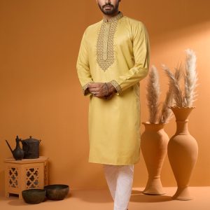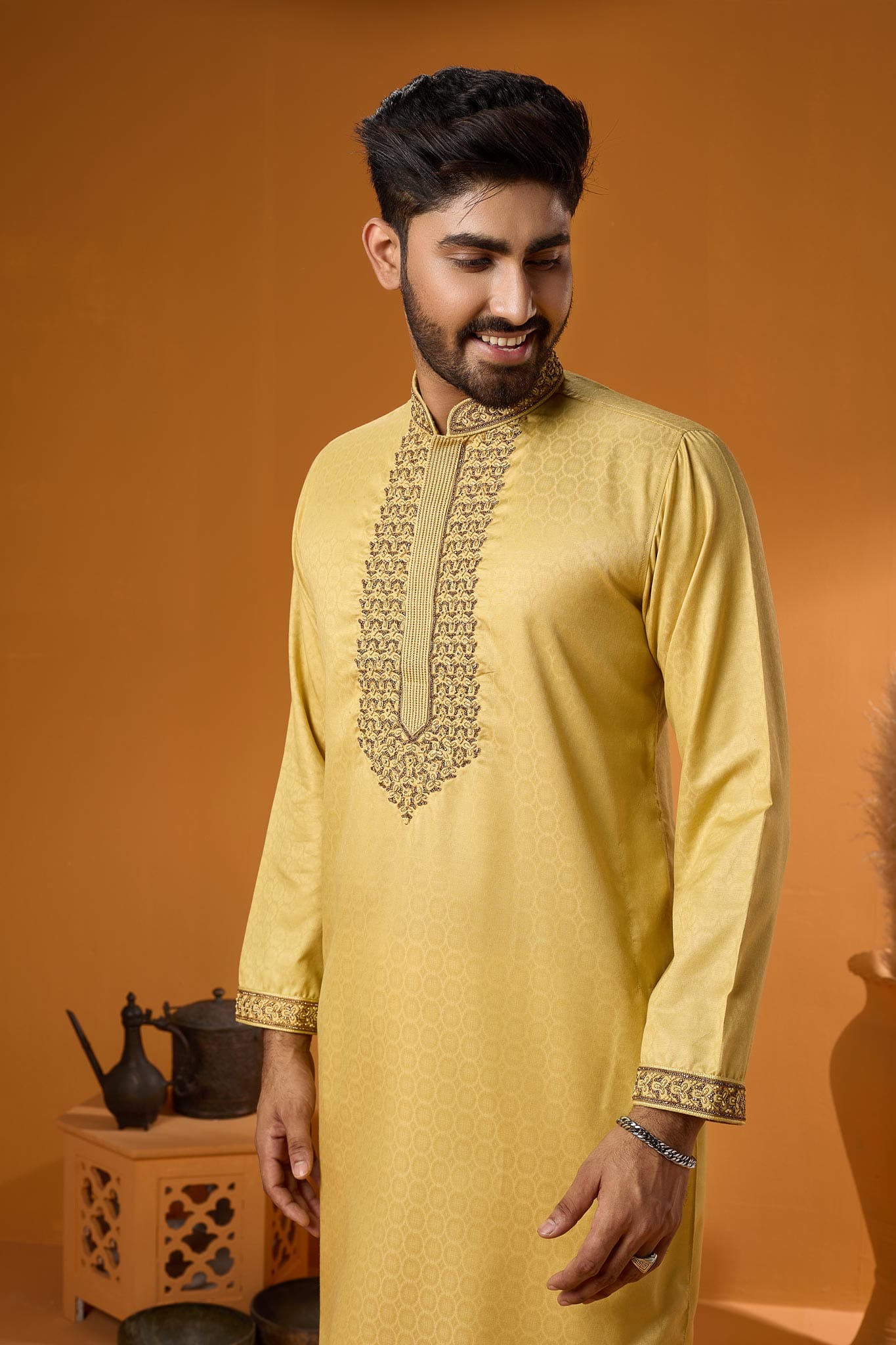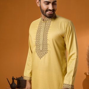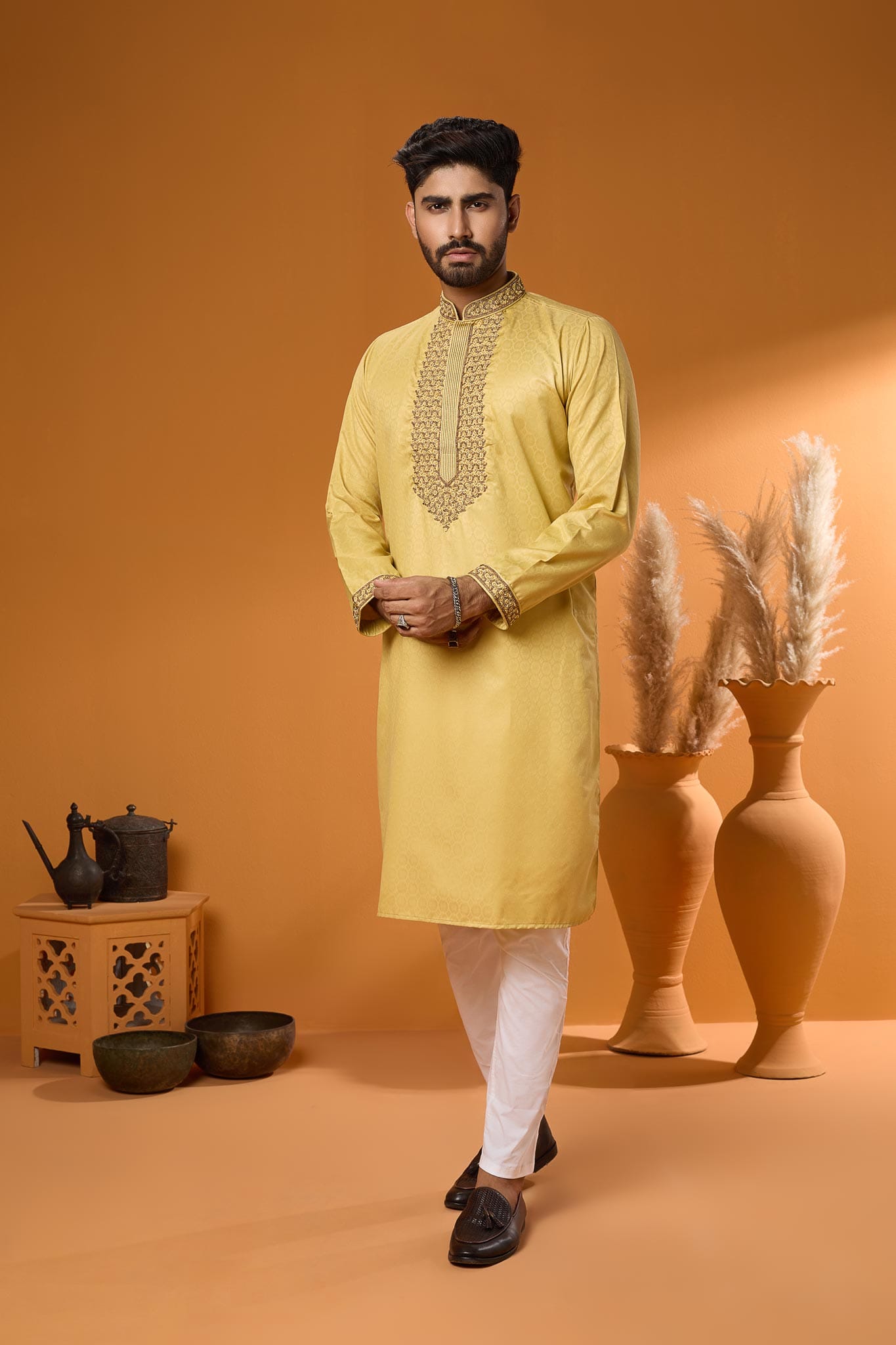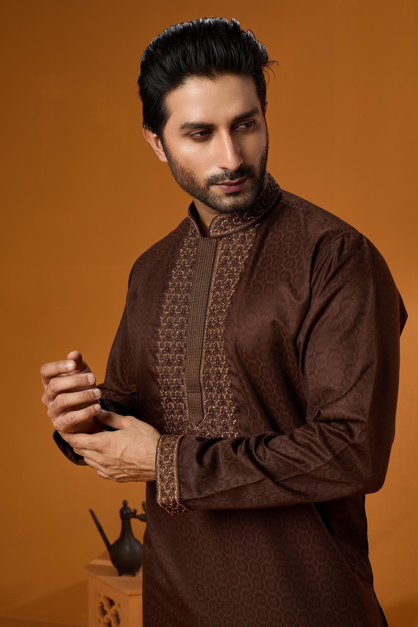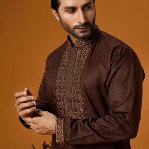 Introducing our Special Edition Panjabi. Tailored from Luxurious Cotton Fabric, this Panjabi showcases Elegant Design and a Touch of sophistication. The interior of this Panjabi features Box design, The exterior Carry’s a rich Handworked stone Design on Collar, Chest And Sleeves. The Olive, Maroon and Coffee colour is carefully chosen to suit various preferences and occasions. Designed with attention to detail, the fiver buttons not only enhance the overall aesthetics but also ensure durability.
